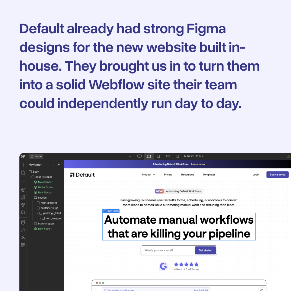Default's team reached out to transform their Figma design into a sleek, responsive Webflow site.