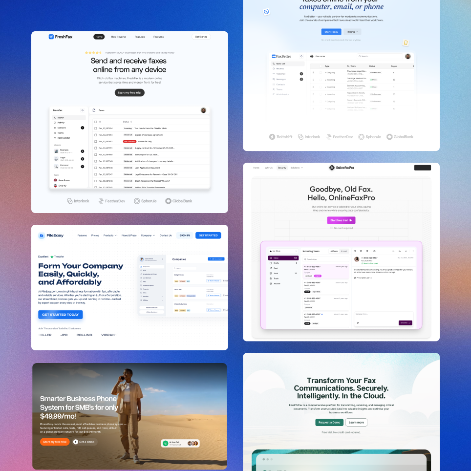 FaxOnline was about to launch and needed a trusted online presence. In just three weeks we built a basic brand identity and a conversion-focused website, with copy that speaks to users and sections placed strategically. Everything was delivered as a fast, responsive 13-page Webflow site. The result is a professional web presence that sets FaxOnline up for a strong launch.