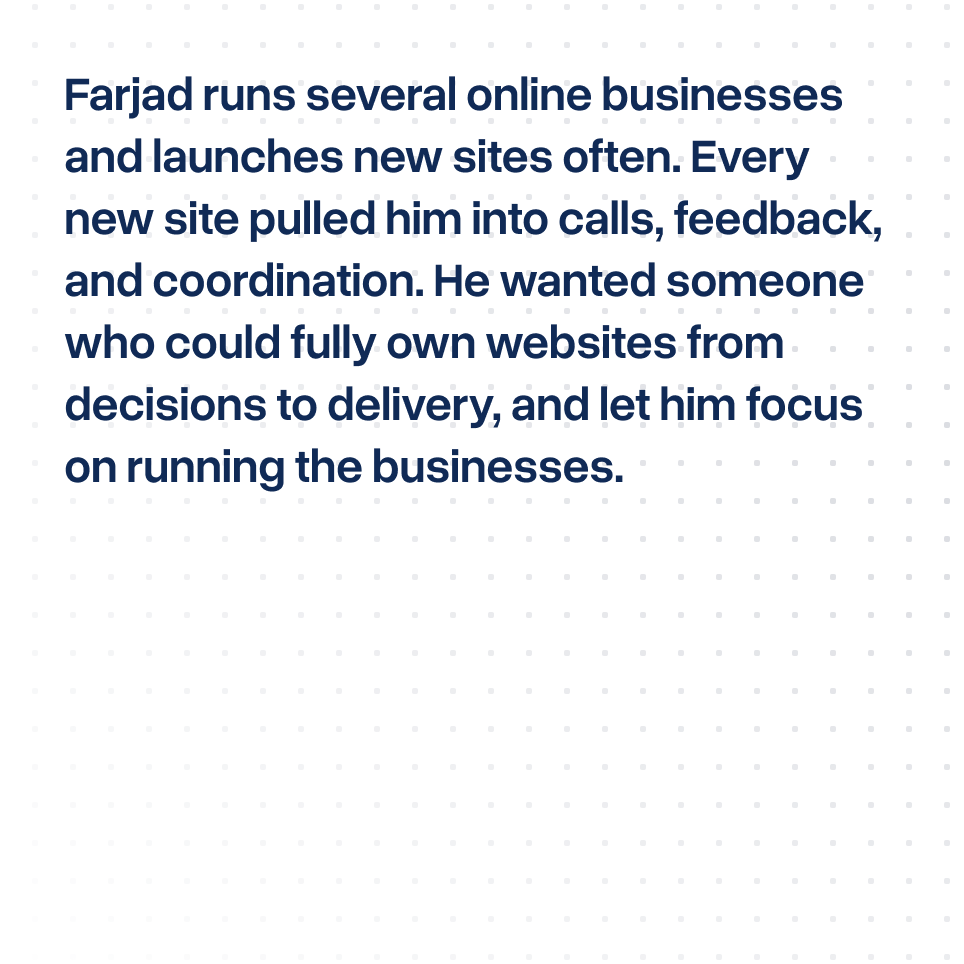 Farjad, a serial entrepreneur, needed a trustworthy design and Webflow team to give his 15 businesses a new sites.