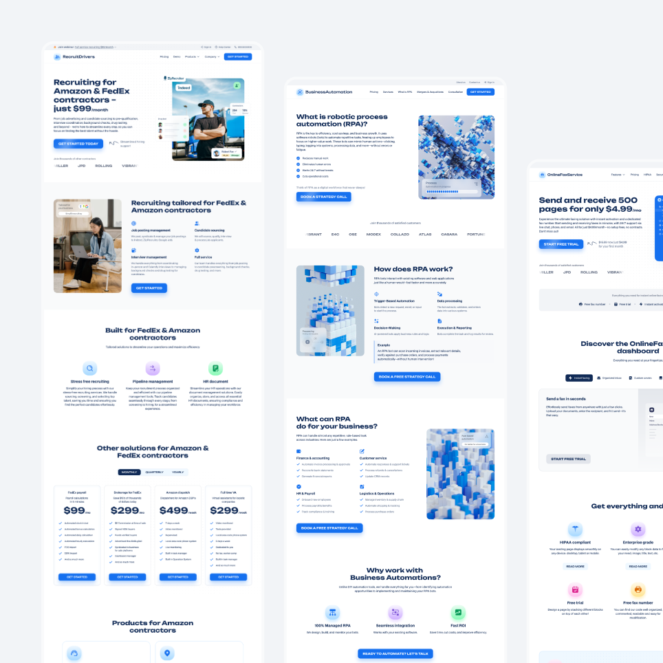 We became his go-to partner, cranking out 2–3 multi-page websites every month. In just six months, we rolled out a solid suite of high-performing sites - each tailored for different audiences, yet all connected by one clean, cohesive style. This not only boosted his brand credibility but also helped drive better conversions.