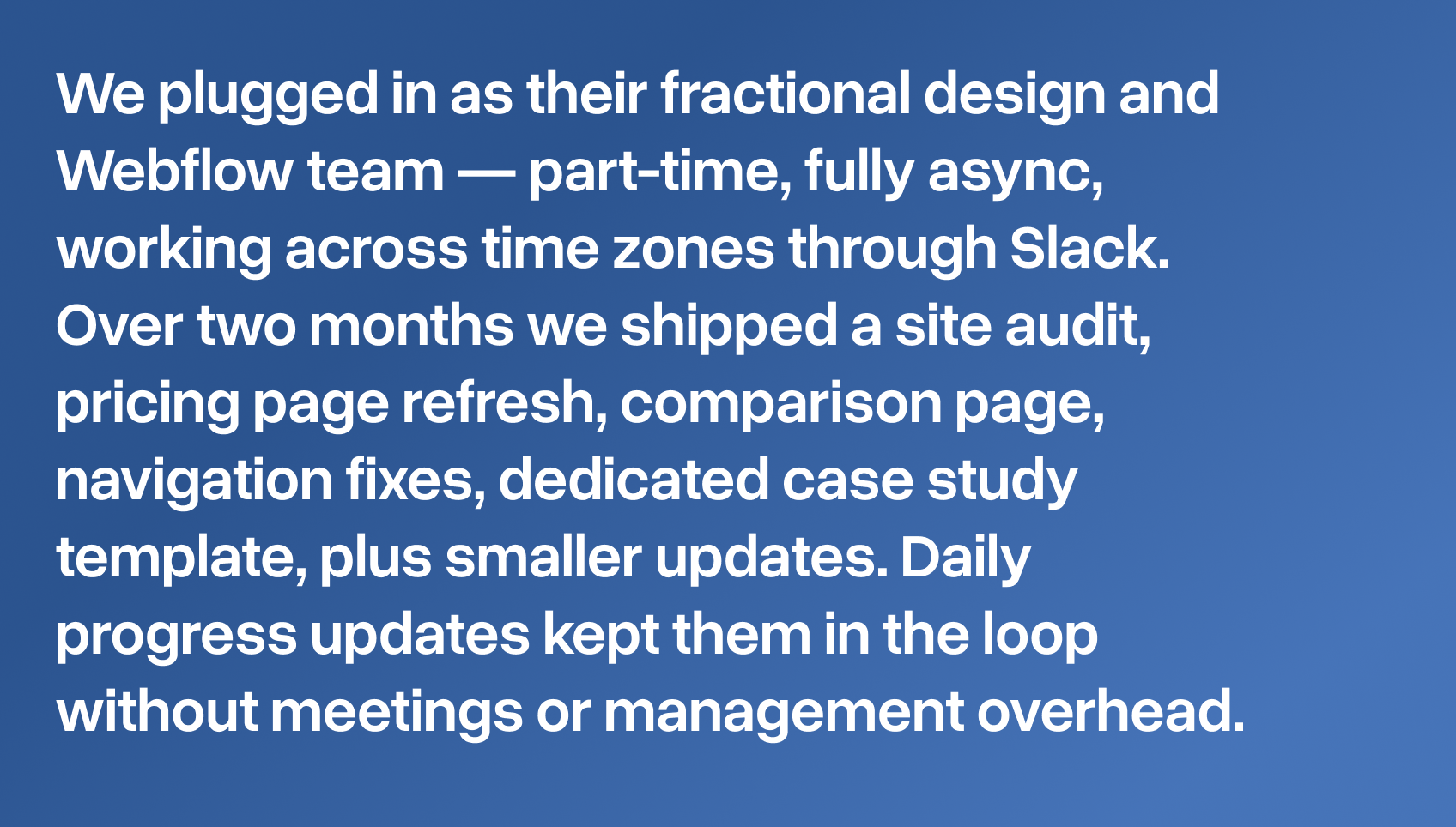 Two weeks later, they had a brand-new Webflow site that looked sharp, felt on-brand, and finally spoke to the right people.